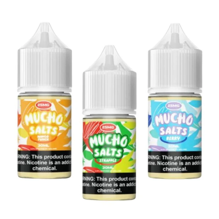 Step up your vaping game with Mucho Nicotine Salts. Each 30ml bottle comes in bold flavors like Strapple and Mango Punch, designed for smooth hits with a 50/50 VG/PG ratio. Available in 25mg and 50mg nicotine strengths, these nicotine salts are crafted in the USA with top-quality ingredients. Whether you’re a casual vaper or a seasoned enthusiast, Mucho Nicotine Salts deliver a premium experience. Mucho Nicotine Salts Features: Bottle Size: Convenient 30ml unicorn bottles for easy use. Nicotine Strengths: Available in 25mg and 50mg for customizable satisfaction. Flavor Variety: Includes bold blends like Strapple (apple and strawberry) and Mango Punch (mango and fruit punch). Balanced Ratio: 50% VG / 50% PG for smooth, flavorful hits. Premium Quality: Crafted in the USA with top-tier ingredients. Smooth Hits: Nicotine salt formulation ensures a refined vaping experience. Cost-Effective: Offers exceptional quality at a competitive price. Mucho Nicotine Salts Flavors: Berry: A delightful mix of juicy berries that dance on your taste buds. Mango Punch: A tropical burst of ripe mangoes with a refreshing finish. Strapple: A perfect blend of strawberries and apples for a crisp, fruity vape. Mucho Nicotine Salts Wholesale: Offer your customers the best with Mucho Nicotine Salts Wholesale. These 30ml unicorn bottles provide bold flavor options like Mango Punch and Strapple, available in 25mg and 50mg nicotine strengths. Crafted with a balanced 50/50 VG/PG ratio, Mucho delivers smooth, flavorful hits that vapers love. Reliable and competitively priced, these nicotine salts are a must-have for vape retailers.