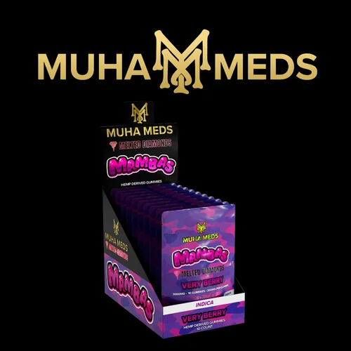 The Muha Meds - D9 + THCp + CBD Melted Diamond Mambas 3000mg 10ct (Display of 10) is a premium CBD and wellness product. Comes in a quantity of display of 10. Suggested retail price $19.99. Ships directly from manufacturer. CBD continues to be a top-performing wellness category. Available at wholesale pricing from Port City Wholesale.