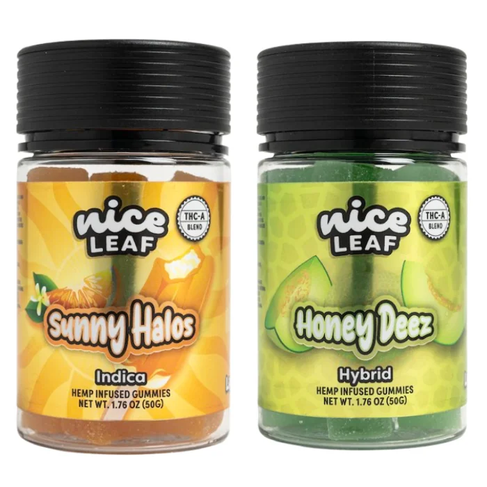Discover the ultimate indulgence with Nice Leaf THC-A Gummies, packed with a potent blend of cannabinoids and crafted for a next-level experience. These gummies combine premium THCa, THCp, THCv, Delta-8 THC, and live resin to deliver unique flavors and effects for both relaxation and an active buzz. Perfect for those seeking high-quality, flavorful edibles with powerful effects. Flavors: Sunny Halos: THCa + THCp + THCv + Delta-8 THC + Live ResinClassification: IndicaEscape into a tropical paradise with Sunny Halos. This zesty, orange creamsicle-inspired gummy delivers a powerful Indica experience with a potent blend of THCa, THCp, THCv, and Delta-8 THC. Perfect for relaxation and long-lasting effects. Honey Deez: THCa + THCh + THCp + Live ResinClassification: HybridHoney Deez sets a new standard for fruit-flavored gummies. Bursting with juicy honeydew melon, this hybrid gummy combines THCa Diamonds and a smooth, balanced buzz. Say goodbye to ordinary gummies and enjoy a standout experience. Features: MG per Gummy: 175MG Total MG per Jar: 3500MG Total Pieces per Jar: 20 THCa Cannabinoid Blend: THCa, THCh, THCp, and Delta-8 THC Elevate your gummy game with Nice Leaf's ultra-potent, expertly crafted THC-A gummies.