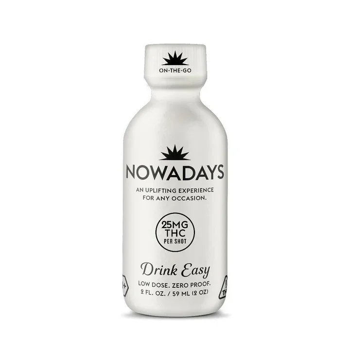 Shop for Nowadays 25mg THC Shot – 2oz Small bottle. Big vibe. This 2oz THC shot packs a bright, buzzy, and balanced experience into a crisp, fruit-flavored drink. Designed for on-the-go ease, it’s the perfect choice when you want something fast, smooth, and discreet. Each shot contains 25mg of hemp-derived THC — ideal for those who know their vibe and want something quick, effective, and alcohol-free. Sip it slow or shoot it straight. You’re in control. Whether you’re pre-gaming, winding down, or skipping the booze altogether, this light, lively spirit gives you an easy lift — without the hangover. Product Highlights Strength: 25mg THC in a single 2oz bottle Effect: Fast-acting, uplifting high in a compact format Flavor: Natural fruit notes with a smooth, crisp finish Use: Sip, shoot, or mix — flexible for any setting Vibe: Great for on-the-go moments or quiet downtime Quality: Hemp-derived, compliant, and lab-tested Quick Nutrition Info (Per Bottle – 2 fl oz): Calories: 20 (10 per ...