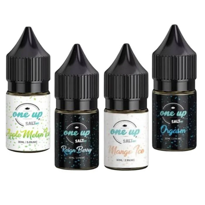 Introducing OneUp Nicotine Salts, available in 30ml bottles with nicotine strengths of 25mg, 35mg, and 50mg. Crafted for use in low-wattage devices, these nicotine salts deliver a smooth, satisfying hit while enhancing the flavor of each puff. Perfect for vapers seeking a higher nicotine content with less throat irritation, OneUp Nicotine Salts provide a rich, flavorful experience with every draw. Flavor Descriptions: Apple Melon: A crisp combination of sweet apples and juicy melons for a refreshing all-day vape. Apple Melon Ice: The same delicious apple-melon blend with an icy, cooling kick for a refreshing finish. Mango Ice: Ripe, tropical mangoes with a frosty burst of menthol, offering a smooth and cool vape. Orgasm: A tropical medley of guava, watermelon, and peach, creating an explosion of sweet and tangy flavors. Orgasm Ice: The classic Orgasm flavor with a chilling twist of menthol for an extra refreshing vape. Reign Berry: A berry lover’s dream with a blend of mixed berries that balances sweet and tart. Strawberry Cheesecake: A rich and creamy dessert flavor that captures the essence of a freshly baked strawberry cheesecake. Strawberry Gummy: Chewy, fruity strawberry gummy candy flavor that satisfies your sweet tooth. Enjoy the diverse range of OneUp Nicotine Salts, perfect for flavor seekers.