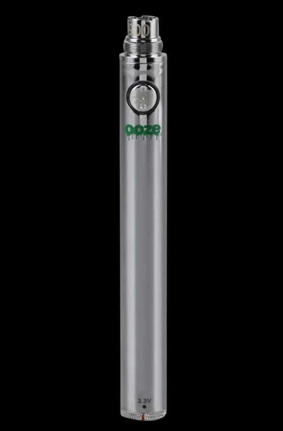 The Ooze 900 Adjustable Twist Battery is 4.5-inches long. This 900mAh battery is the most powerful battery in the Twist family that's compatible with all 510-threaded cartridges and attachments. These 900mAh Ooze Adjustable Twist Batteries come in a 5-pack in your choice of silver or black. Each battery features a 20-second pre-heat function, a 5-click locking function, standard 510-threading, and a twisting variable voltage output. The dial at the bottom allows you to easily adjust the voltage and temperature. The batteries are designed for the easy vaporization of even the thickest oil cartridges. These batteries are covered by the Ooze lifetime warranty.