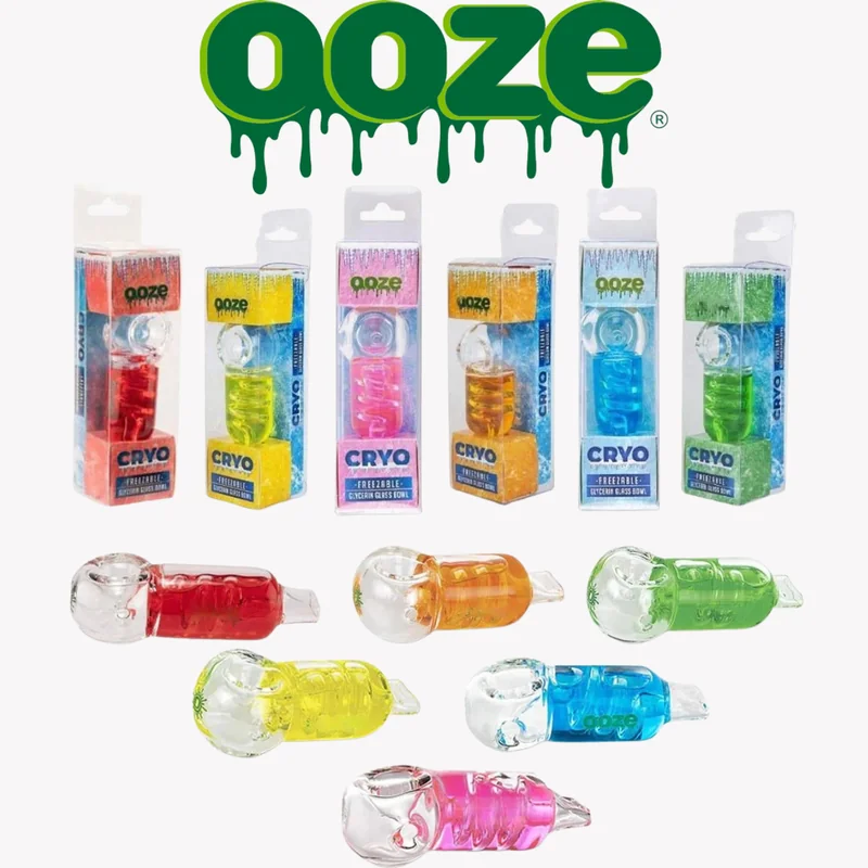OOZE CRYO FREEZABLE GLYCERIN GLASS BOWL HAND PIPE The Ooze Cryo Glycerin Glass Bowl is a futuristic glass bowl filled with liquid glycerin that transforms your entire smoking experience. Place the bowl in the freezer prior to use, and enjoy chilled, smooth hits that are easy on your throat. These bowls are unlike just about anything your customers have seen before! Hang them in clear view and they're sure to be a hit. Who doesn't love a painless, cough-free smoke sesh? Weight: 0.5 lbs Colo