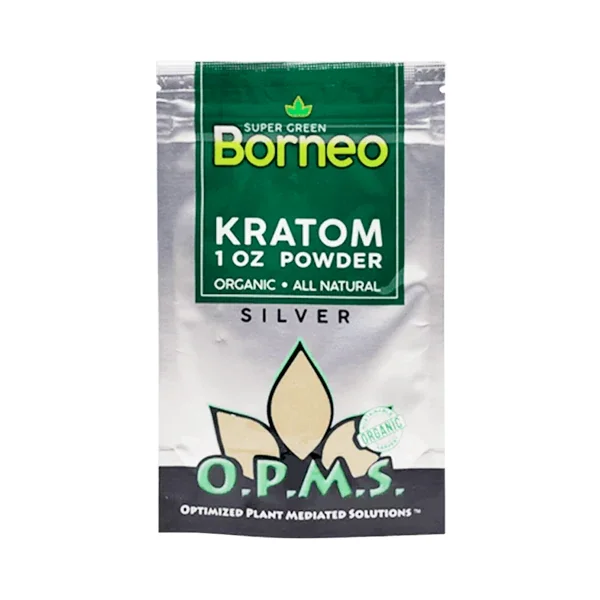 OPMS Silver Super Green Borneo Powder The OPMS Silver line is renowned for its high-quality Kratom products, made through an extensive cold water extraction process. The Borneo strain is a strong kratom blend with a powerful alkaloid content. Available Sizes 1oz, 4oz, 16oz Key Features 100% organically grown and harvested with care by native farmers who specialize in Kratom production Additional Product Information Ingredients: Mitragyna Speciosa (Kratom) Leaf