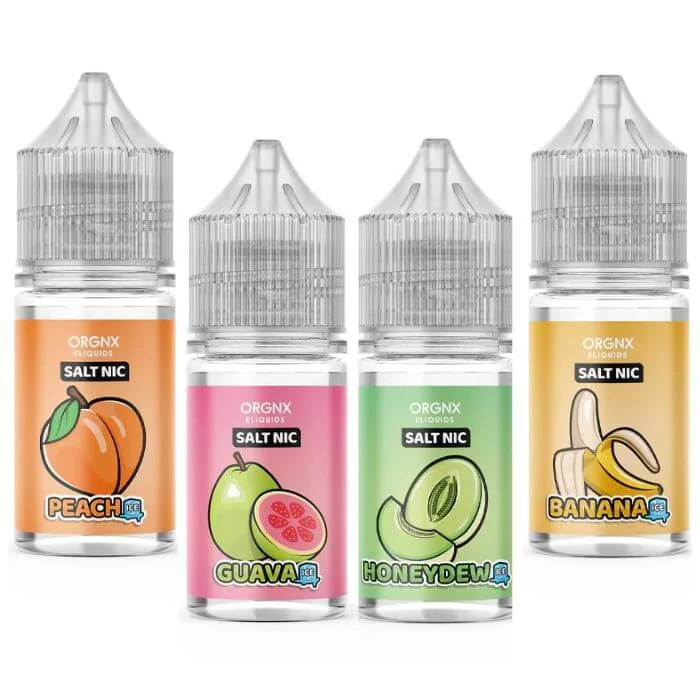 Introducing the new Orgnx Nicotine Salts in 30ml bottles with 35mg and 50mg nicotine strength options. These premium nicotine salts deliver a smooth and flavorful vaping experience with an icy twist, making them ideal for vapers seeking a refreshing hit. Crafted with high-quality ingredients, Orgnx Nicotine Salts offer a range of fruit-inspired flavors enhanced by cool menthol for a satisfying, chilled vape. Flavors Apple Ice – Crisp, juicy apple with a refreshing icy finish. Banana Ice – Smooth banana flavor complemented by a cool menthol breeze. Guava Ice – Sweet and exotic guava balanced by a frosty menthol exhale. Honeydew Ice – Refreshing honeydew melon paired with an invigorating icy hit. Lychee Ice – Sweet, tropical lychee enhanced with a chilling menthol twist. Mango Ice – Ripe, juicy mango blended with a cool menthol finish. Orange Ice – Zesty orange with an energizing menthol kick. Peach Ice – Juicy peach flavor with a frosty menthol breeze. Pineapple Ice – Sweet and tangy pineapple wrapped in a cool, icy finish. Subzero – Pure menthol for a bold, icy blast with every inhale. Watermelon Ice – Sweet watermelon infused with a cooling menthol chill. Enjoy the refreshing burst of fruit and ice with Orgnx Nicotine Salts!