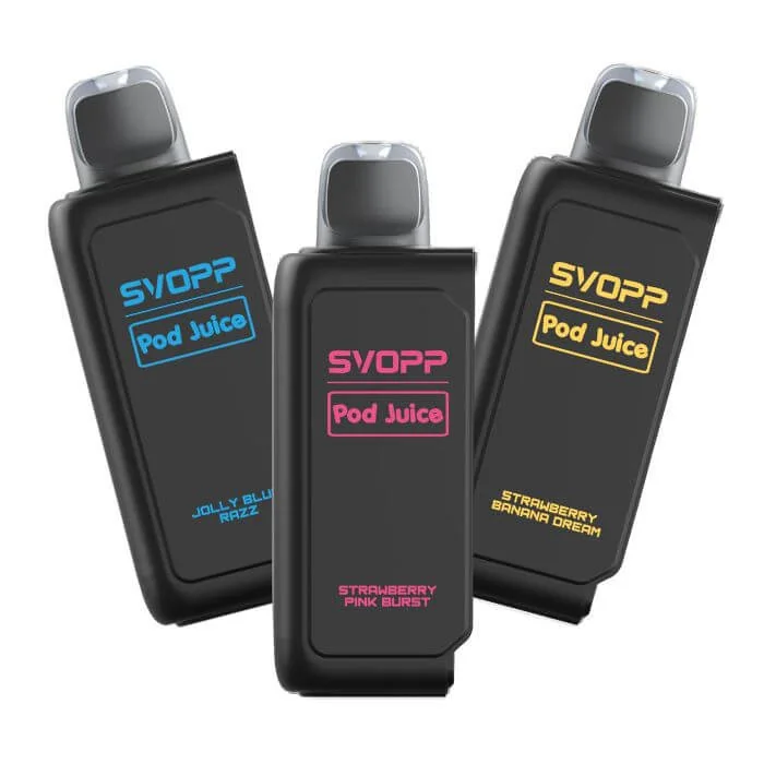Maximum Purchase Quantity: 10 x 5 Packs per flavor. Experience flavorful vaping with the OXBAR x Pod Juice Svopp 30K Vape, offering a generous 13mL e-liquid capacity and two vaping modes. With a nicotine strength of 5% (50mg), users can expect satisfying hits in both Normal and Boost modes, providing 30,000 and 15,000 puffs, respectively. The ergonomic TPU mouthpiece and dual mesh coil technology ensure optimal flavor delivery, making this vape a popular choice among enthusiasts. OXBAR x Pod Juice Svopp 30K Vape Features: Nicotine Strength: 5% (50mg) 13mL E-Liquid Capacity Normal Mode: 30,000 Puffs Boost Mode: 15,000 Puffs Dual Mesh Coil for Optimal Flavor Adjustable Airflow Ergonomic TPU Mouthpiece Child Lock Protection Related Product: OXBAR x Pod Juice Svopp Battery. OXBAR x Pod Juice Svopp Flavors: Clear Emerald – A crisp and clean flavor with a smooth finish for a pure vaping experience. Dragonfruit Lemonade – Exotic dragonfruit perfectly balanced with zesty lemonade for a refreshing twist. Fruity Pebz – A playful mix of fruity cereal flavors that will bring back childhood memories. Fruity Worms – A burst of tangy and sweet gummy worm flavors for candy lovers. Honey Nutty O's – A rich, nutty, and sweet flavor reminiscent of honey-covered cereal. Jewel Mint Emerald – Cool, refreshing mint with a smooth, icy finish for an invigorating vape. Jolly Blue Razz – Tart and sweet blue raspberry candy flavor for a vibrant vaping experience. Juicy Pink Watermelon – Sweet, juicy watermelon with a delightful hint of pink candy for extra sweetness. Rocket Pop – A nostalgic combination of cherry, lime, and blue raspberry that mimics the classic popsicle. Strawberry Banana Dream – A smooth blend of ripe strawberries and creamy banana for a dreamy vape. Strawberry Pink Burst – A juicy explosion of sweet strawberries with a burst of pink candy flavor. OXBAR x Pod Juice Svopp Wholesale: The OXBAR x Pod Juice