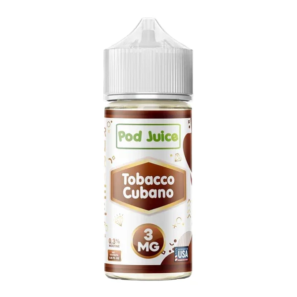 POD JUICE VAPE JUICE 100ml Flavor : The wholesale Tobacco Cubano POD Juice 100ml is a premium Cuban tobacco inspired flavor for cloud chasers, mod users and lower-nicotine vape customers. Browse Mi-Pod's selection of wholesale vapes and hardware today. E-liquid contents : 100mL Nicotine Strengths : 3mg and 6mg Blended for use with vape mods, sub-ohm coils, and lower resistance pods. Browse more Wholesale E-Liquids