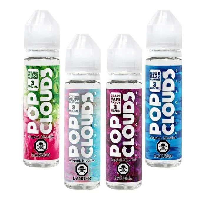 Introducing the new Pop Clouds E-Liquids Synthetic Nicotine, available in 2-bottle packs of 60ml each with 3mg and 6mg nicotine strengths. Designed to deliver a smooth and flavorful vaping experience, Pop Clouds E-Liquids are crafted with synthetic nicotine for enhanced satisfaction and bold flavors that last. Flavors Blue Razz – A tangy burst of blue raspberry that delivers a sweet and sour sensation with every inhale. Grape – Juicy, bold grape flavor that’s rich and satisfying, perfect for all-day vaping. Strawberry – Sweet, ripe strawberries that offer a delicious, fruity taste with a smooth finish. Watermelon – Refreshing and mouthwatering watermelon flavor, perfect for a light, summery vape. Enjoy a premium vaping experience with these rich, synthetic nicotine flavors that provide smooth, consistent hits every time.