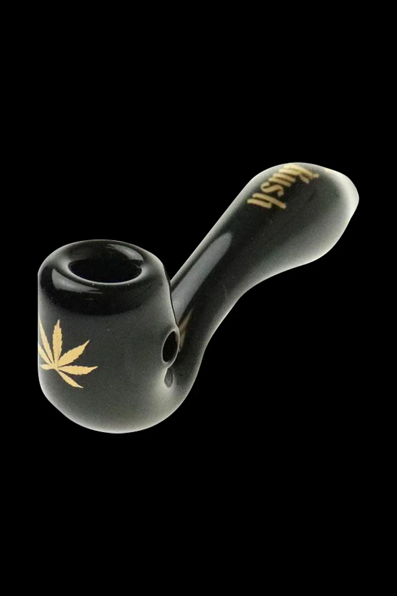 Puff Puff Pass continues to make awesome strain-inspired gear with this classy OG Kush pipe. This hand pipe features a Sherlock shape and is made with premium black borosilicate glass. The gold decals on the bowl and neck add to the sophisticated look and the 4-inch length makes this pipe great for traveling. The bowl is deep and has a built-in screen and ash catcher so you never have to worry about ash traveling into your pipe. The flattened bottom makes loading effortless and the stylish box works as safe and easy storage.