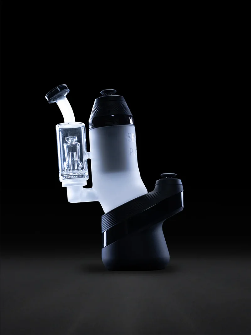 Spider is known for his dual top designs, and this Proxy + Peak Dual Top is a fresh redesign of the classic. Most of the glass body is sand-blasted for a matte finish, with Raven Black on the mouthpiece and a transparent cloud chamber. It also features Spider, Puffco, and the edition number etched into the side. The Dual Top can be used solely with the Proxy and included 3D-printed base, or it can be inserted into a Peak or Peak Pro base for even more power. Device not included. All sales final.