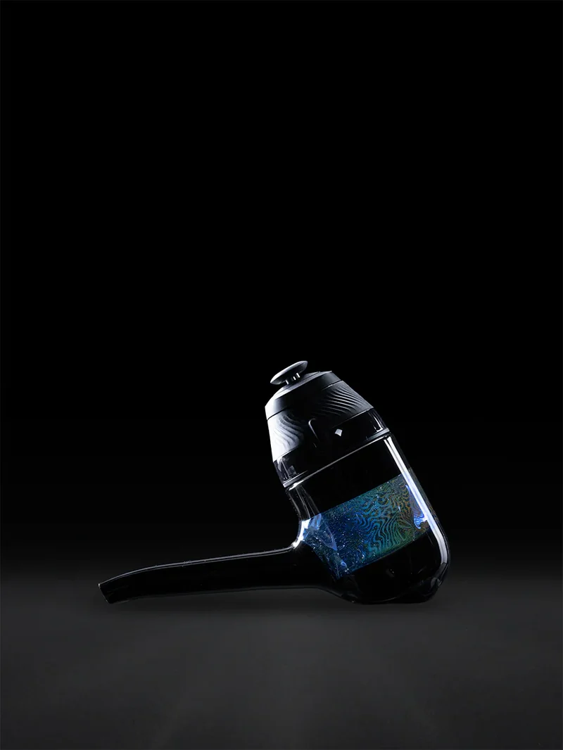 Set against a sleek black canvas, this Proxy Sherlock keeps the form simple while showcasing a bold splash of gold and silver fume. The minimalist design lets the transparent fume midsection shine, bringing subtle shimmer and contrast to the piece. Color: BLACK Device not included. All sales final.