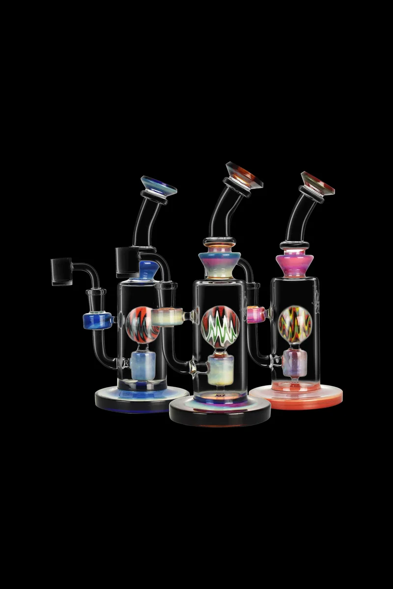 Meet the Jupiter Atmosphere Dab Rig by Pulsar – a true beauty in both style and color! Standing tall at 9.5 inches, this dab rig is not just eye-catching but packs a punch in functionality too. Featuring a drop-down joint connection and a ball & barrel perc, it's designed to give you that smooth and satisfying hit. The 14.5mm female joint with a fixed reinforced downstem ensures durability and ease of use. Plus, it comes with a 14.5mm quartz banger, so you're all set for an elevated experience. To top it off, the bent neck adds a touch of comfort to your sessions. Crafted from high-quality borosilicate glass, the Jupiter Atmosphere Dab Rig is not just a pretty face – it's a reliable companion for your dabbing adventures. The Jupiter Atmosphere rig ships in varying colors, depending on availability.