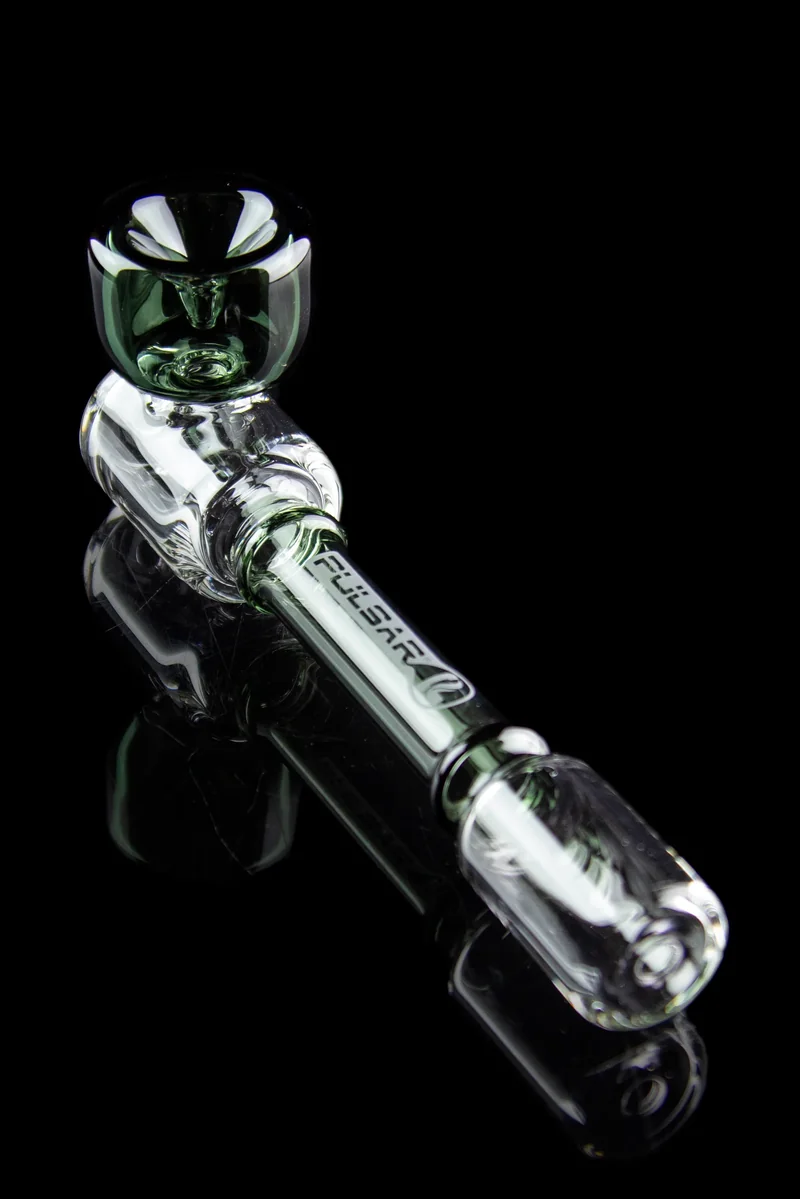This 6" inch long steamroller from Pulsar is an industrial take on the classic steamroller design, updating it with a contemporary style. Featuring an inline carb hole, it gets you ripped the way only a steamroller can, without sacrificing the sleek aesthetic. The thick borosilicate glass makes it as sturdy as glass possibly can be, crafting it into a naturally durable design. SHIPPED IN RANDOM COLORS.