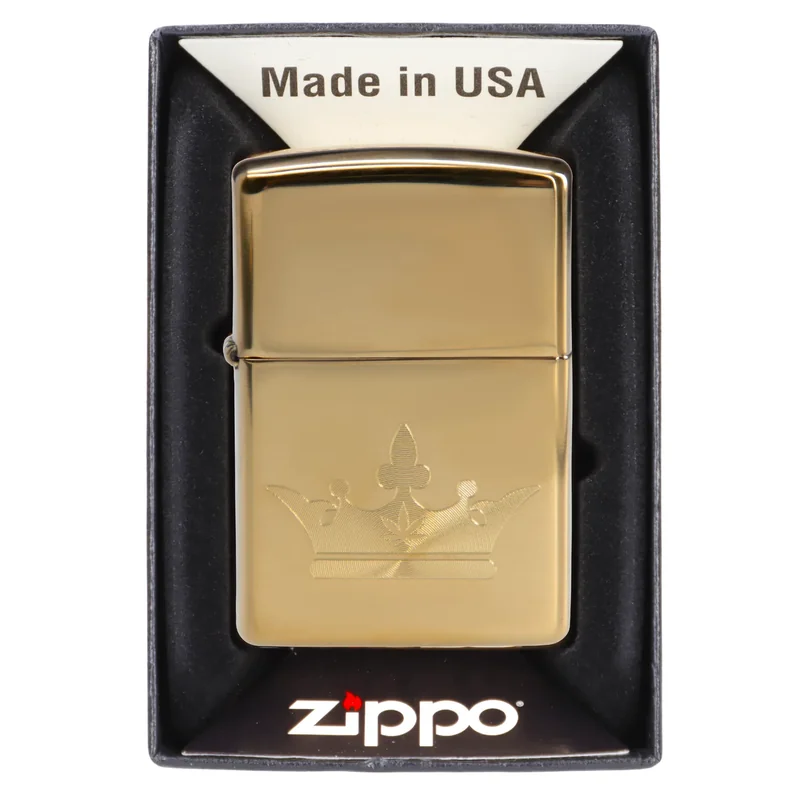 "The Queen of Bud Golden Majesty Zippo is a true emblem of elegance and refinement. Featuring a lustrous golden finish, this Zippo is complemented by a subtly embossed crown logo, complete with a cannabis leaf. Its sleek design exudes a sense of royal luxury, making it the perfect accessory for those who value simplicity, sophistication, and exceptional craftsmanship in their everyday essentials. Key Features & Benefits Regal Design: The polished golden finish, paired with the embossed crown logo featuring a cannabis leaf, offers a refined and majestic aesthetic. Reliable Performance: Zippo’s signature windproof flame ensures consistent lighting in any weather, while the smooth flip design allows for easy, effortless use. Durable & Timeless: Crafted for long-lasting durability, this Zippo combines high-quality materials with a timeless design, making it a lasting addition to any collection. Perfect Gift: A luxurious and thoughtful gift for cannabis enthusiasts and collectors alike, this Zippo adds a touch of class and sophistication to any lifestyle. Note: Lighter does not come filled. Please fill before use. Celebrate luxury and craftsmanship with the Golden Majesty Zippo, where timeless design meets enduring quality."