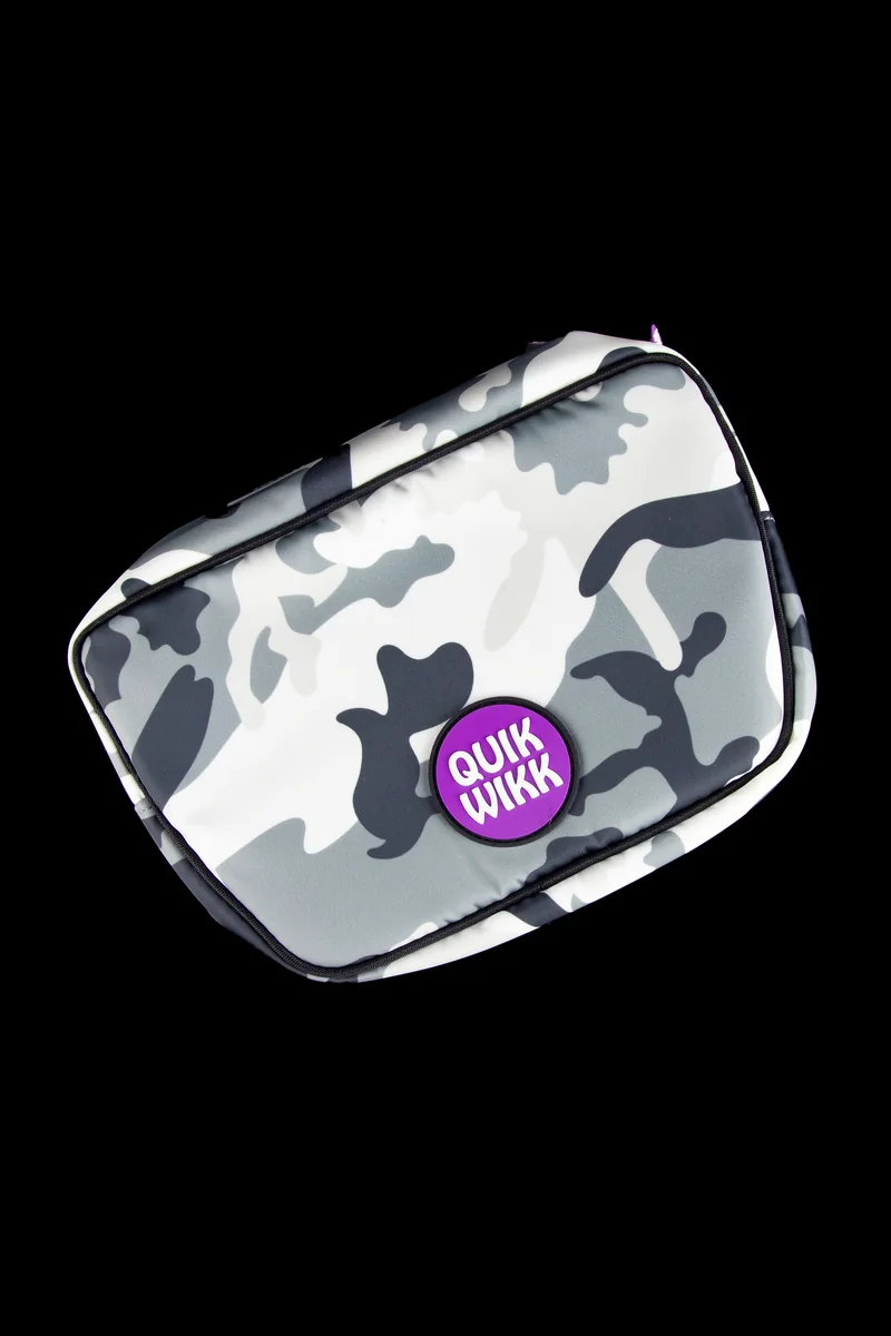 Use the Quik Wikk Chest Pack to safely carry your smoking gear wherever you go. This lightweight and durable chest pack features a secure zippered closure to keep your belongings safely inside during travel. There's plenty of room inside for your pipe, lighter, wick, and other necessary accessories. The pack features a cool camo design and is adorned with an iconic Quik Wikk logo patch.