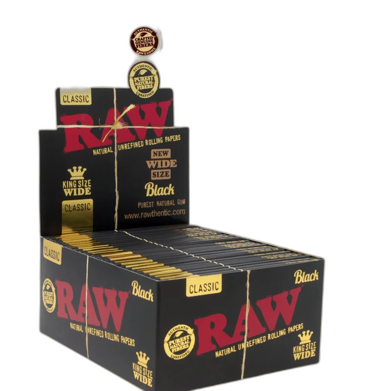 RAW BLACK KING SIZE WIDE 33CT ROLLING PAPERS DISPLAY OF 50 (RAW-167) The RAW Black King Size Wide Rolling Papers are designed for the ultimate smoking experience, offering an ultra-thin, slow-burning paper that enhances the flavor of your herbs. Crafted from unbleached, natural fibers , these rolling papers are both eco-friendly and reliable. Each pack contains 33 papers , and the display of 50 makes it ideal for retailers catering to smoking enthusiasts who demand premium quality. Features: Ult