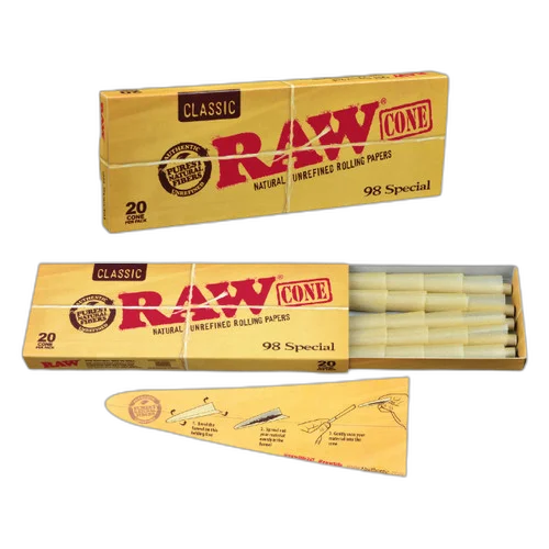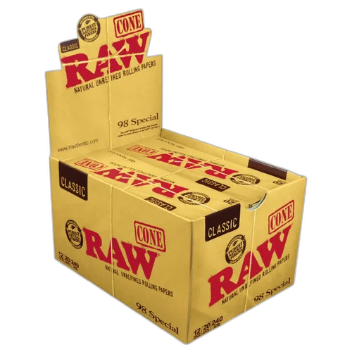 Classic 98mm/20mm Pre-Roll Cones (20ct) - Display of 12 — premium pre-rolls from RAW. Crafted with care for an even burn, smooth draw, and consistent experience. The easiest way to enjoy quality flower. Suggested retail: $7.00.