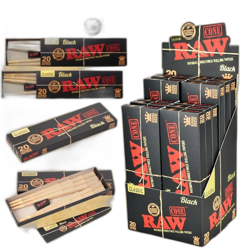 The RAW CLASSIC BLACK KING SIZE CONES DISPLAY OF 12 (RAW-155) by RAW is a premium cone crafted with quality materials for a smooth, even burn. This product offers excellent value for regular users and retailers alike. Roll with confidence using products designed for consistency and quality. Wholesale pricing available at Port City Wholesale.