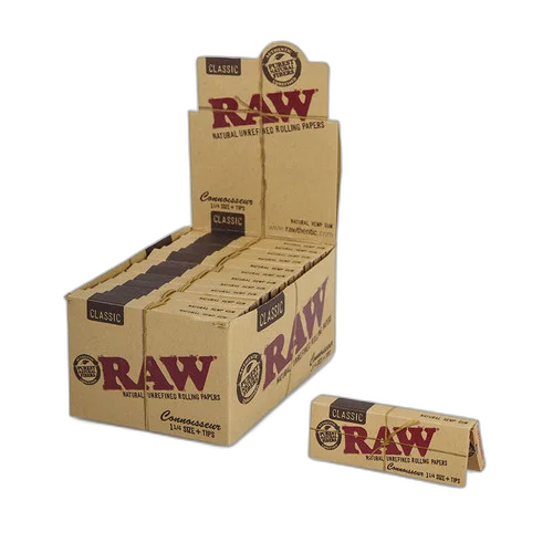 Shop/Products/RAW® - Classic Connoisseur Rolling Papers 1¼ with Tips (50ct) - Display of 24 (MSRP $3.00ea)