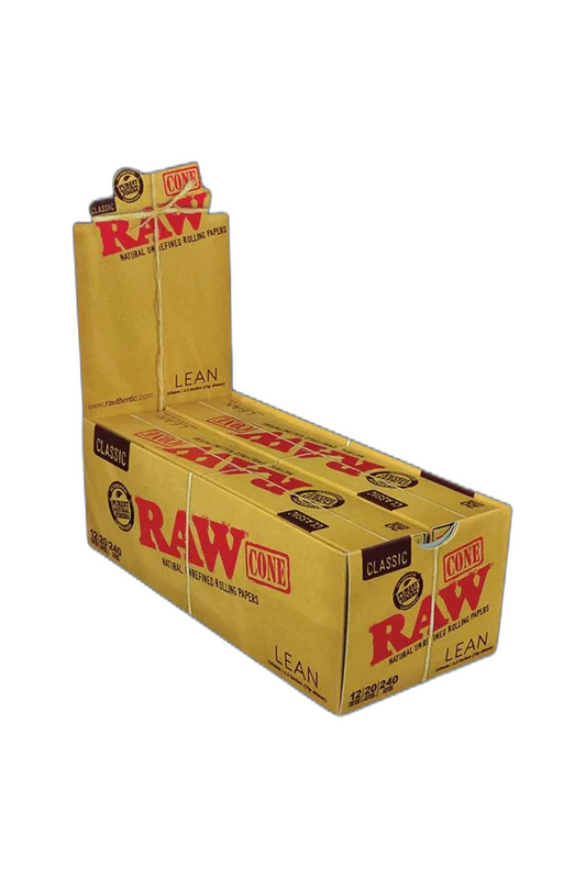 If Raw is your way to roll, check out this display of Raw Classic Lean Cones. This display is a convenient and valuable purchase for anyone who uses Raw cones on an everyday base. It contains 12 packs, each with 20 cones. The Classic Lean Cones measure 110mm long and have a 40mm tip for a smooth draw. Made with natural and unrefined fibers.