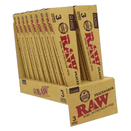 Shop/Products/RAW® - Classic Pre-Roll Cone Peacemaker Size (3ct) - Display of 16 (MSRP $7.00ea)
