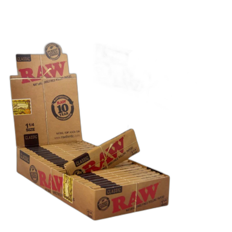 RAW - CLASSIC 1¼ ROLLING PAPERS - DISPLAY OF 24 RAW Classic 1¼ is our original size. Also known as “Spanish Size”, 1¼ papers were the standard size of all rolling papers starting hundreds of years ago. Since then, many other shapes, sizes, and materials have been used to produce a wide variety of papers. Here at RAW, we’ve stayed true to our roots and make this paper from naturally unrefined plants with a natural tree sap gumline for an experience that is t