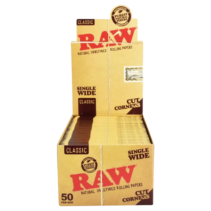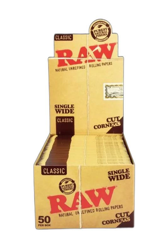 If RAW is your favorite way to roll, save some time and money with this 50 piece display. The papers are made in Spain with non-chlorinated fibers that deliver a clean and slow burn. The natural hemp gumline is here to seal your rolls and to maintain slow and even burning. These are classic RAW papers with cut corners which simplifies rolling. Shipped in a box of 50 packs, each with 50 sheets.