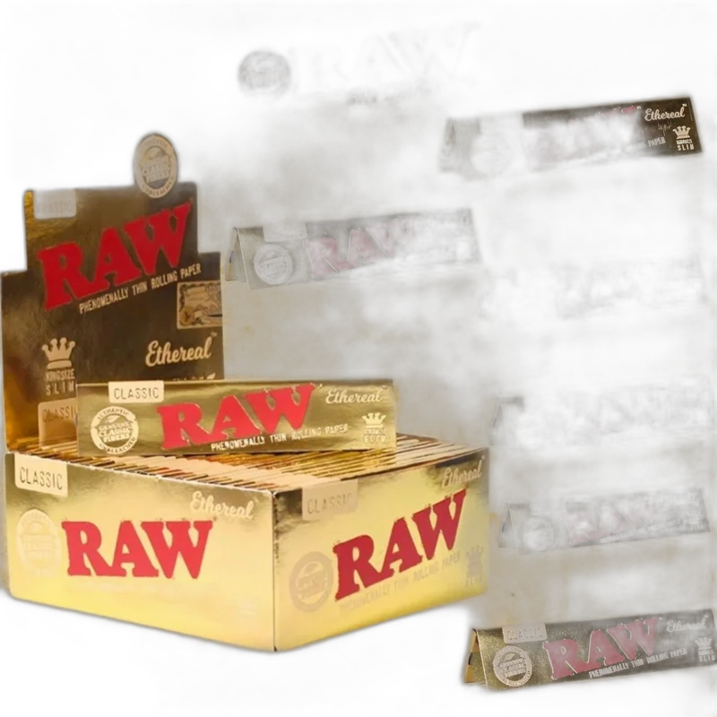 RAW ETHEREAL KING SIZE SLIM ROLLING PAPERS 32CT DISPLAY OF 50 Elevate your smoking experience with the RAW Ethereal King Size Slim Rolling Papers , designed for a clean, slow-burning experience that enhances the flavor of your herbs. Made from unbleached, natural fibers , these ultra-thin rolling papers are both eco-friendly and premium in quality. Each pack contains 32 papers , and the display of 50 is ideal for retailers or bulk buyers seeking a top-tier product for their customers. Features: