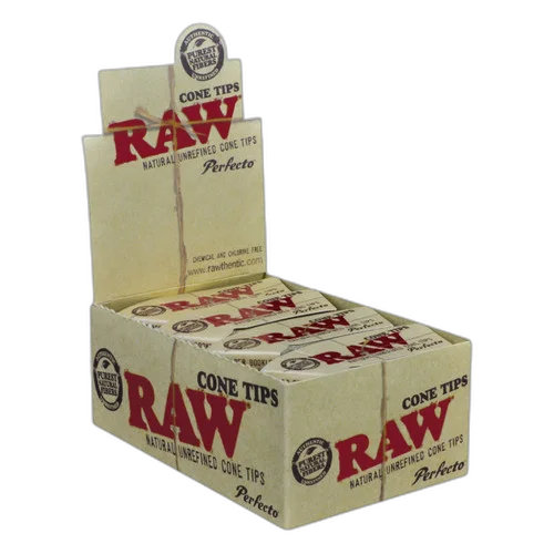 Perfecto Cone Tips (32ct) - Display of 24 — premium pre-rolls from RAW. Crafted with care for an even burn, smooth draw, and consistent experience. The easiest way to enjoy quality flower. Suggested retail: $3.00.