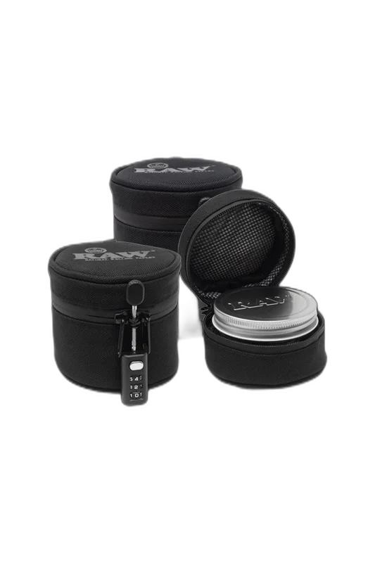 Need a safe and secure way to store your ground herbs? RAW has your back with the RAW Smell Proof Jar & Cozy w/ Lock . Available in three sizes (small 6-oz), (medium 10-oz), (large 16-oz), this durable glass storage jar is an excellent solution for keeping your herbs fresh and secure. The included smell proof glass storage jar with a metal screw-on lid comes with a lockable cozy to keep others out. This 5-layer, UV-blocking protective cozy aka case features a built-in combination lock.