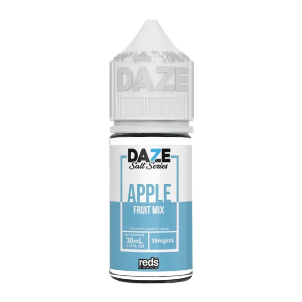 NICOTINE SALTS | NOT FOR SUB OHM Flavor: The Reds Apple Fruit Mix nic salt vape juice by 7Daze Salts blends a sweet apple with mixed fruit flavors for a great vape experience. 30mL E-Liquid Bottle Blended for use with Pod System Vapes Available in: 30mg · 50mg WARNINGS WARNING: This product can expose you to chemicals including nicotine, which is known to be harmful in the State of California to cause birth defects or other reproductive harm. For more information, go to www.P65Warnings.ca.gov . WARNING: Do not use in Sub-Ohm style tanks and atomizers. WARNING: This product contains nicotine. Nicotine is an addictive chemical.