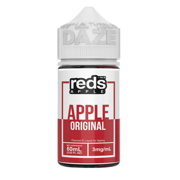 Vape Juice from Reds by 7DAZE The award-winning Red's Apple Original e-Juice provides a smooth, ripe red apple taste for your vape tank. E-Liquid Contents : 60mL Nicotine Strengths : 3mg & 6mg Blended for use with SubOhm Vapes Browse more flavors from Reds by 7DAZE here