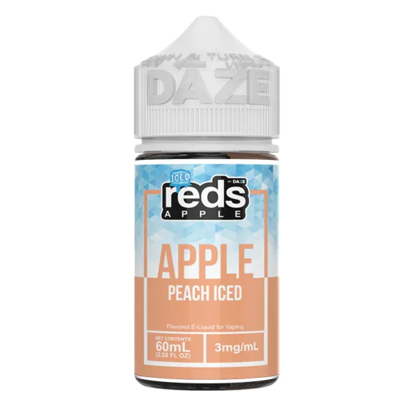 Vape Juice from Reds by 7DAZE Buy the Red's Peach Iced e-Juice in bulk for your store. The Apple Peach Iced uses a quality mix of apple, peach and menthol flavors. E-Liquid Contents : 60mL Nicotine Strengths : 3mg & 6mg Blended for use with SubOhm Vapes Browse more flavors from Reds by 7DAZE here