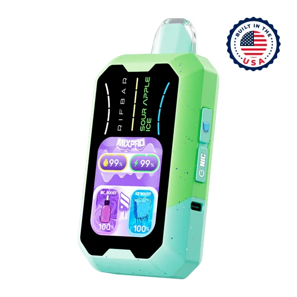 RIFBAR ICE CONTROL VAPE Flavor : The Sour Apple Ice Rifbar Mixpro has flavor and nic control technology, allowing for a customized vaping experience. Wholesale Rifbar vapes are available at Mi-Pod. This Rifbar Mixpro is filled in the USA. Puff Count : ~40,000 E-Liquid Capacity: 1 8ml Triple Mesh Coil Adjustable Airflow Ice Boost Feature Full Color Display tracks battery, e-liquid and customizable settings Battery : USB Type-C Rechargeable Child Lock Mode Short Circuit Protection Shop All Disposable Vapes