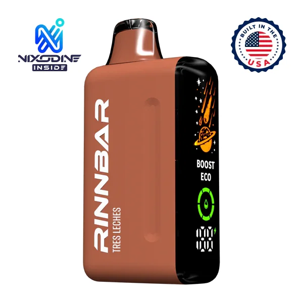 WHOLESALE RINNBAR 50000 NIXODINE VAPE 5-PACK Flavor: The wholesale Tres Leches Rinnbar 50000 Nixodine features Nixodine which is a satisfying nicotine alternative. Nixodine Strength: 50 Puffs per Device: 50K (Eco Mode), 35K (Boost Mode). Display: Smart LED Display with E-Liquid and Battery Life Indicator. Battery: 850mAh Rechargeable via USB-C Heating Element: Dual Parallel Mesh Coil Manufacturing: Built in the USA Nixodine is a patented non-nicotine blend which provides a comparable experience to nicotine. Related Links Nixodine Products Wholesale Disposable Vapes *Warning: Nixodine Could Be Habit Forming.*
