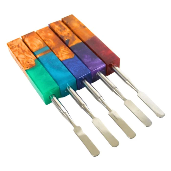 ple | Red Add style and precision to your sessions with the 8″ Wood Resin Dab Tool. Crafted from durable wood and resin, this tool offers reliable handling for concentrates and a vibrant look to match any setup. Its 8-inch length provides better control, while flat edges prevent it from rolling off surfaces. Key Features: 8″ length for better precision and reach Wood and resin construction for durability Flat edges to prevent rolling Ideal for handling wax and concentrates Available Colors: Aqua Blue Green Purple Red Durable, functional, and eye-catching—perfect for everyday use or gifting.
