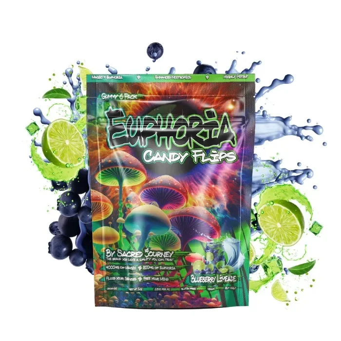 Power your high-energy moments with Euphoria Candy Flip Gummies, designed for those who want a fast, noticeable boost. Each gummy delivers a bold flavor and a quick lift to help support energy, focus, and mental clarity when you need to stay in the zone. Perfect for events, busy days, or creative sessions, these gummies offer a convenient and flavorful way to elevate your performance and maintain momentum. Start with one and adjust your serving to match your desired intensity for a customized experience. Flavors: Black Cherry – Deep, rich cherry sweetness. Blue Raspberry – Tangy blue candy flavor. Blueberry Limeade – Sweet blueberries with a zesty lime twist. Orange Sherbert – Creamy citrus with a smooth finish. Pineapple Mango – Juicy tropical fruit blend. Pink Lemonade – Sweet and refreshing citrus punch. Rainbow Slushy – Mixed fruity flavors in a cool candy blend. Strawberry Kiwi – Sweet strawberries balanced with tart kiwi. How to Use Start with one gummy for energy and clarity. Take up to six gummies, depending on your preferred intensity.