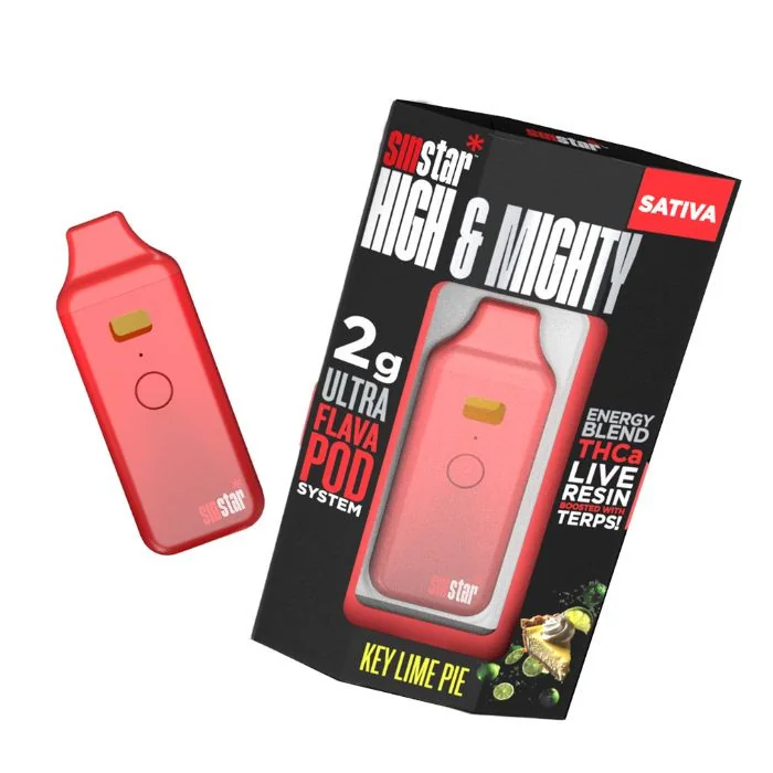 Take your vaping experience to the next level with Sinstar High & Mighty FLAVA PODS. Each 2-gram disposable is infused with 38% THC-A, 21% CBDa, and 16% CBT, delivering a potent, well-balanced effect profile. Crafted with premium live resin and boosted terpenes, these pods offer rich flavor, smooth vapor, and powerful results. Perfect for both retail shelves and wholesale buyers, they combine convenience, performance, and exceptional taste in every puff. Available Flavors: Key Lime Pie – Zesty lime with creamy, sweet pie notes for a tangy dessert-inspired hit. Whether for personal use or as a top-seller in your store, Sinstar High & Mighty offers unmatched taste and performance.