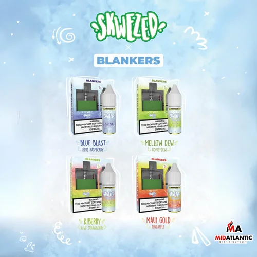 Skwezed Blankers Disposable Device Kit w/ 1x 10mL Salt Nic Sample *Display of 5*