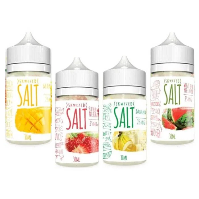 Introducing the new Skwezed Nicotine Salts, available in 30ml bottles with nicotine strengths of 25mg, and 50mg. Crafted to deliver a refreshing burst of icy flavors, these e-liquids combine premium ingredients with a cool menthol finish, perfect for an all-day vape. Flavors Banana – Smooth and creamy banana flavor. Grapefruit – Tangy and citrusy grapefruit. Green Apple – Crisp green apple. Lychee – Exotic and sweet lychee fruit. Mango – Sweet, juicy mango. Mixed Berries – A medley of sweet and tart berries. Peach – Ripe and juicy peach flavor. Pink Lemonade – Tangy pink lemonade. Strawberry – Fresh strawberries. Watermelon Green Apple – Juicy watermelon and crisp green apple. Watermelon – Sweet, juicy watermelon. Watermelon Strawberry – A fruity fusion of watermelon and strawberry. Watermelon White Grape – A unique blend of watermelon and white grape. Blue Raspberry: A sweet and tangy burst of ripe blue raspberries for a bold, fruity vape. Honeydew: Smooth and refreshing honeydew melon with a light, juicy finish. Kiwi Strawberry: A tropical fusion of tangy kiwi and sweet strawberries for a balanced, fruity taste. Pineapple: Crisp, juicy pineapple flavor with a sweet and tropical twist. Experience the perfect balance of fruity sweetness and refreshing menthol with Skwezed Nicotine Salts!