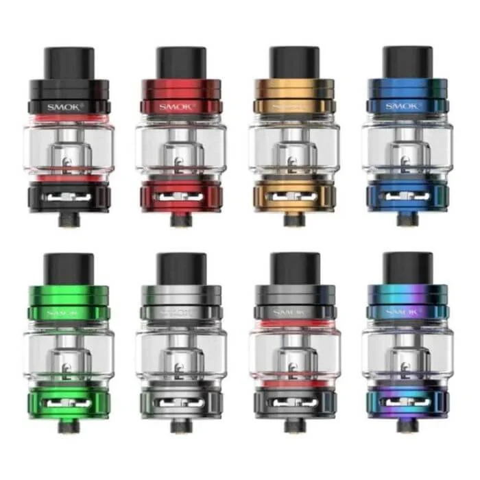 The SMOK TFV9 Tank features a convenient top-fill system with childproof cap, adjustable bottom airflow, 6.5ml capacity, and uses the SMOK V9 coils. Designed for massive vapor production and great flavor, the SMOK TFV9 Tank has a large refill slot and central airflow tube that makes refilling more convenient. The bottom of the tank uses a gold-plated 510 pin to increase rub resistance and strengthen electrical conductivity.The SMOK TFV9 Tank is compatible with the full line of SMOK V8 Baby Coils. SMOK TFV9 Tank Specifications: Capacity: 6.5ml. Height: 56mm. Diameter: 28mm. Weight: 75g. Material: Stainless Steel. Thread: 510. Includes: 1x SMOK TFV9 Tank. 1x SMOK V9 Meshed 0.15-ohm Coil (pre-installed). 1x SMOK V9 Meshed 0.15-ohm Coil. 1x Replacement Glass. 1x User Manual.