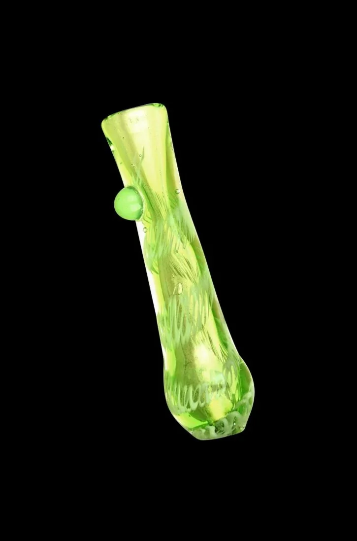 Enjoy inconspicuous puffs of your favorite herbal strains with this Acid Green Worked Glass Taster . This little chillum-style glass pipe is 3.25-inches long, making it perfectly portable and super discreet. Take your pick from the multiple color combinations of slime green, black, and white. No matter which style you pick, this durable taster made of strong boro glass will surely serve you well. Because of the inert nature of glass, there won't be any outside tastes interfering with your smoking enjoyment. When you load the bowl and light up, you'll enjoy the true flavor and effects of your herbs.