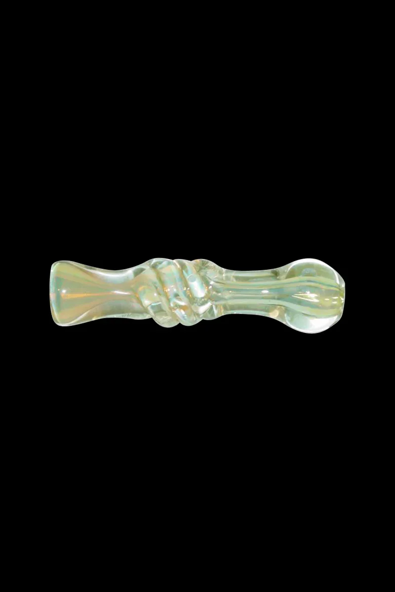 For those times you don't want to (or can't) pull out your bong or roll a joint, use this 3.5-inch long Round Mouth Glass Tobacco Taster . This portable hand pipe with the clever taster bat design is just the right size for taking quick & stealthy hits of your favorite herbal products. Sporting a swirled silver-fumed iridescent design, this pocket-sized glass pipe is a real looker. Each piece is handmade which means the one you get may vary slightly from the photo shown. The round mouthpiece on this pipe makes taking quick hits comfortable. This is an easy-to-use and clean pocket pipe that’s built to last. Grab one today.