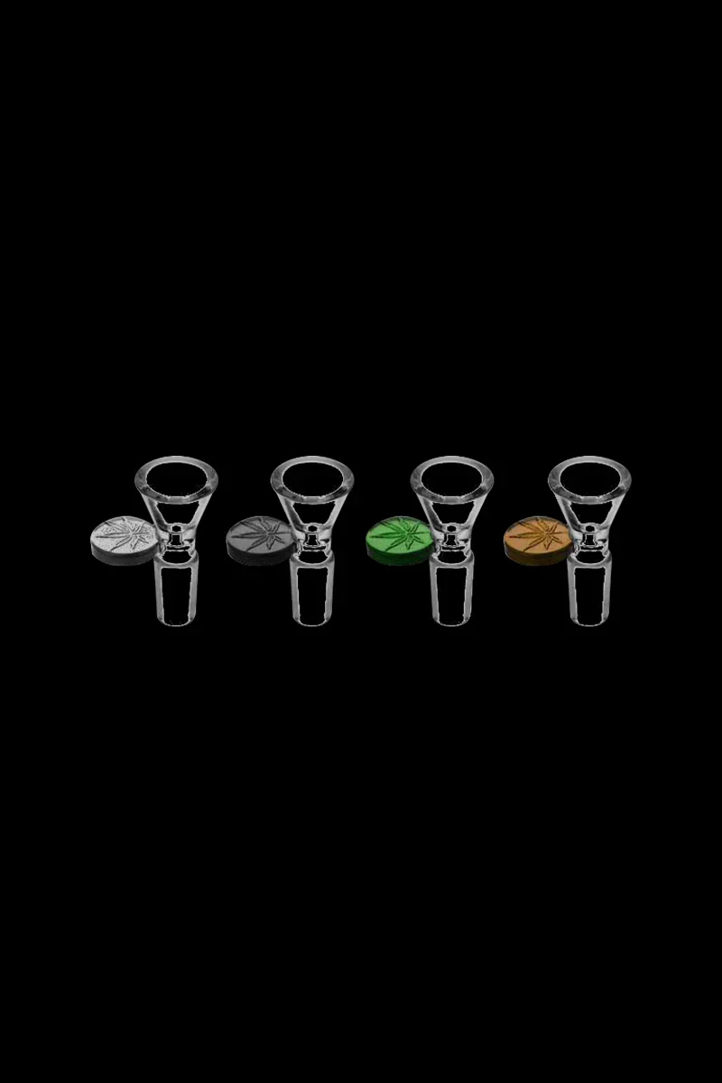 Get this handsome Herb Slide w/ Embossed Leaf Tab to add a pop of color and style to any water pipe with a 14mm female joint. This 14mm male herb slide features a handle with an embossed cannabis leaf design. This slide is made of durable, heat-resistant borosilicate glass . It offers a roomy bowl that holds plenty of ground herb. Whether you're looking to expand your glass collection or simply need a good-looking herb slide for daily use, this is a great piece to own. The slide's 14mm male joint will fit snugly inside any water pipe with a 14mm female joint. It's sold in assorted, random colors. Get yours today.