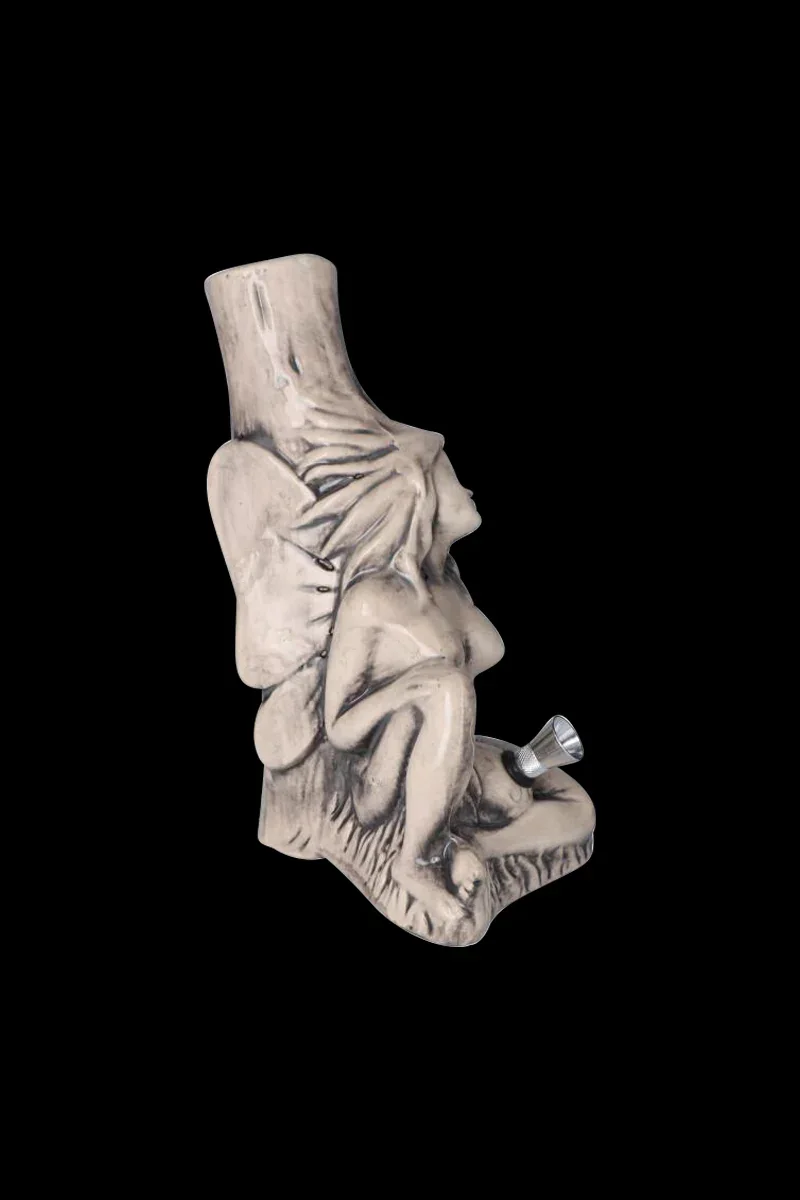 A lovely gift for every woman in your life, this gorgeous ceramic pipe celebrates the beauty of feminine energy. It's sculpted with heat-resistant and durable ceramic and depicts a long-haired woman resting against a tree and holding a water jug between her legs. This intricate piece is handcrafted and features gorgeous details. The piece stands on a stable base and has a wide mouthpiece for comfortable rips. It looks like an ornament, so it won't be easily recognized as a bong by your guests. You'll receive a removable metal herb bowl along with your bong. The water pipe itself is super easy to clean and maintain as it's dishwasher friendly.