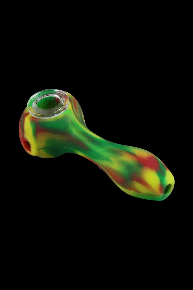Glass pipes are beautiful but they can crack and break if handled roughly or dropped. On the other hand, silicone hand pipes come in tons of cool colors and they're super durable. This colorful 4.5-inch long Silicone Pipe is made from food-grade silicone that's safe to use and flexible. Best of all, the silicone material won't crack or break, even if this pipe is dropped on a hard surface. If you're looking for a pocket-friendly pipe you don't have to coddle, this silicone pipe is perfect for you! It's outfitted with a durable borosilicate glass bowl insert that has plenty of room for holding a good amount of ground herb. And since the bowl is removable, cleaning this pipe is super easy to do. The item ships in random colors.