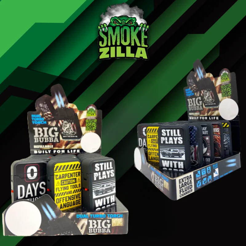Upgrade your setup with the SMOKE ZILLA BIG BUBBA DUAL TORCH LIGHTER DISPLAY OF 15 (23821). This lighter combines practical design with solid construction. A dependable choice for both personal use and retail inventory. Shop wholesale at Port City Wholesale for competitive bulk pricing.