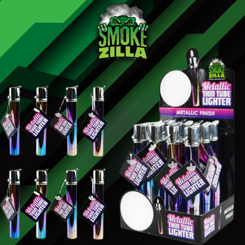 SMOKE ZILLA THIN TUBE LIGHTER DISPLAY OF 12 (26642) — a well-crafted lighter designed for reliability and ease of use. Built to last through regular use. An excellent addition to any shop inventory or personal collection. Wholesale quantities available at Port City Wholesale.