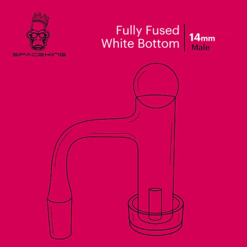SPACE KING FULLY FUSED WHITE BOTTOM RED 14MM MALE BANGER KIT The Space King Fully Fused White Bottom Red 14mm Male Banger Kit is designed for optimal heat retention and smooth vaporization , offering a fully fused quartz build with a white bottom for enhanced heat distribution . The red accents give it a bold and stylish look , making it a standout addition to any collection. With a 14mm male joint , this banger is compatible with most standard dab rigs , ensuring a seamless dabbing experience f