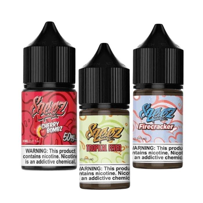 Sqeez Nicotine Salts pack serious flavor into a compact 30ml bottle. With nicotine strengths of 25MG and 50MG, they’re made for vapers who want smooth throat hits and quick satisfaction. Flavors like Cherry Bomb (ripe cherries), Firecracker (lemonade with sour raspberry), and Tropical Fever (dragonfruit, guava, kiwi) bring bold, well-crafted profiles to each draw. Formulated with high-quality salt nicotine and compatible with low-wattage pod systems, these salts are a go-to for mouth-to-lung vapers looking for premium flavor in every puff. Sqeez Nicotine Salts Features: Bottle Size: Comes in a compact 30ml bottle for convenient use. Nicotine Strengths: Available in 25MG and 50MG for a smooth, satisfying hit. Flavor Options: Includes Cherry Bomb, Firecracker, and Tropical Fever. Cherry Bomb: Features the juicy, sweet taste of fresh ripe cherries. Firecracker: A tart lemonade base with sour raspberry for a bold, mouthwatering profile. Tropical Fever: A fruity fusion of dragonfruit, guava, and kiwi for an exotic vape. Salt Nicotine Formula: Crafted for smooth throat hits and quick nicotine delivery. Pod Compatibility: Ideal for use with low-wattage pod systems and MTL devices. Premium Crafting: Made with high-quality ingredients for consistent flavor and performance. Sqeez Nicotine Salts Flavors: Cherry Bomb: Cherry Bombz has a pleasant inhale that offers the taste of fresh ripe cherries. Firecracker: When you take your first inhale, you’ll get a blast of tart, lemonade that makes you drool like crazy. Then, the intoxicating taste of sour raspberries tickles every taste bud and makes your mouth pucker. Tropical Fever: A delicious tropical mixture of fresh Dragonfruit, Guava, and Kiwi. Sqeez Nicotine Salts Wholesale: Sqeez Nicotine Salts Wholesale gives retailers a flavor-rich, high-nicotine product line that resonates with salt users. Compact and easy to stock, these 30ml bottles are great for maximizing shelf space and variety. The un